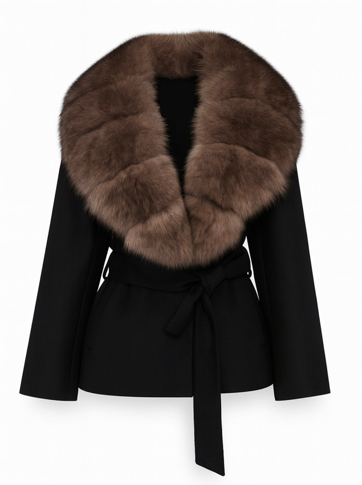 Son col en fausse fourrure brune, doux et volumineux, apporte une touche de sophistication incomparable.