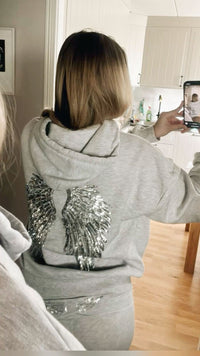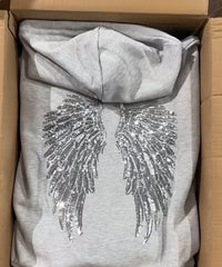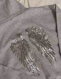 Son point fort : un motif ailes scintillantes au dos, qui apporte une touche originale et stylée, parfaite pour se démarquer. Sa coupe oversize et sa capuche intégrée en font un pull casual femme facile à porter, aussi bien à la maison qu’en sortie.
